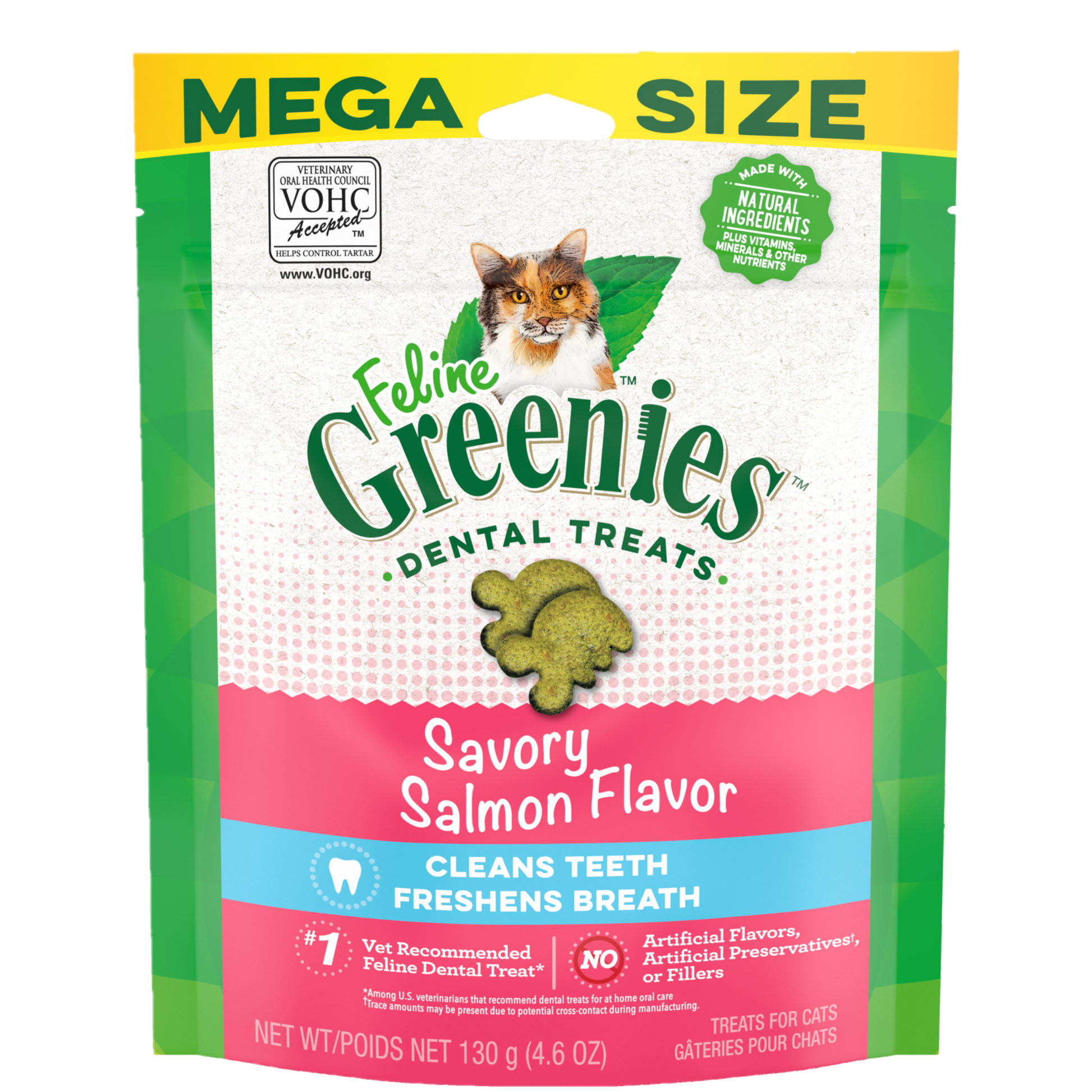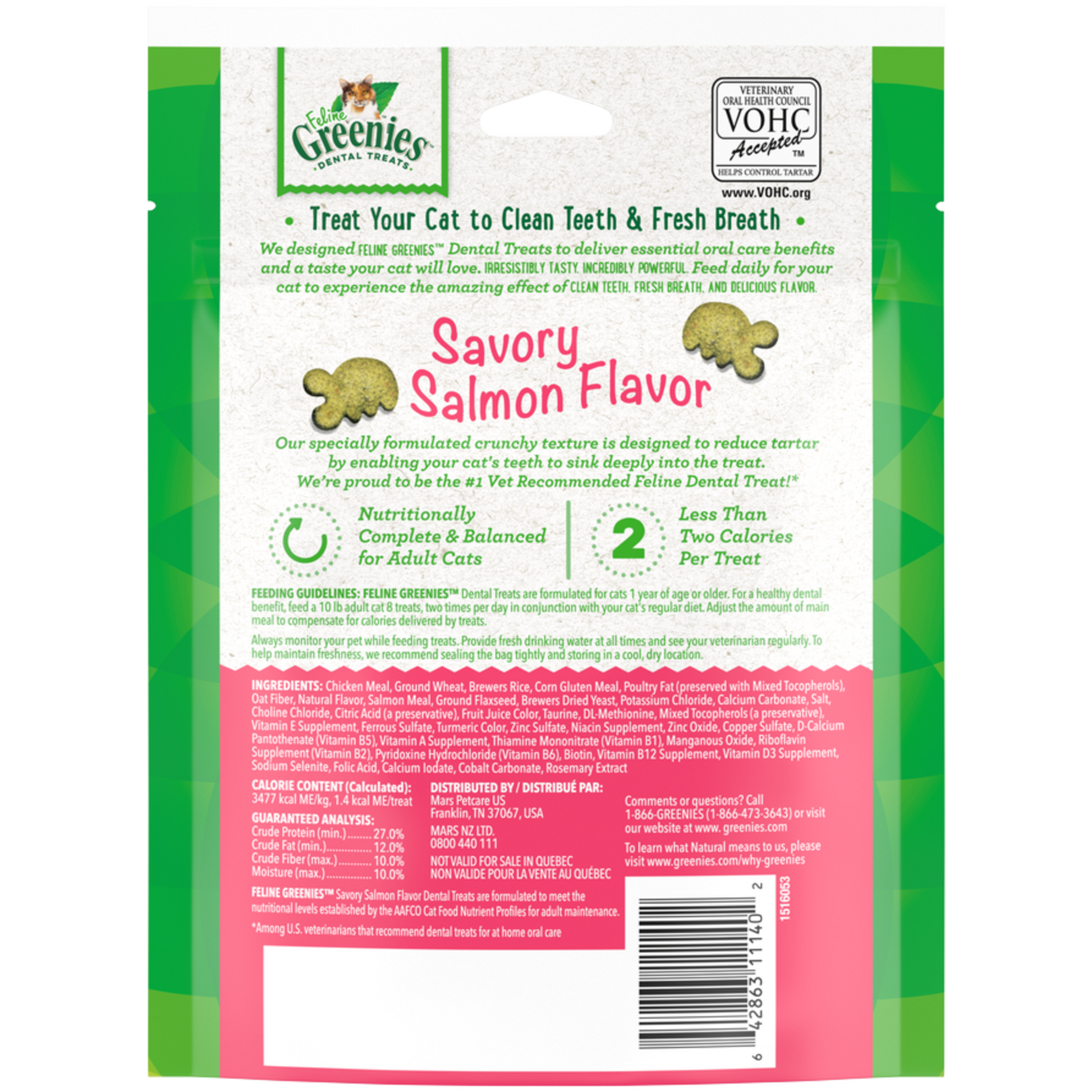 We designed FELINE GREENIES™ Dental Treats to deliver essential oral care benefits and a taste your cat will love. Irresistibly tasty, incredibly powerful. Our specially formulated crunchy texture is designed to reduce tartar buildup by enabling your cat's teeth to sink deeply into the treat. Feed daily for your cat to experience the amazing effect of CLEAN TEETH, FRESH BREATH, AND DELICIOUS FLAVOR.