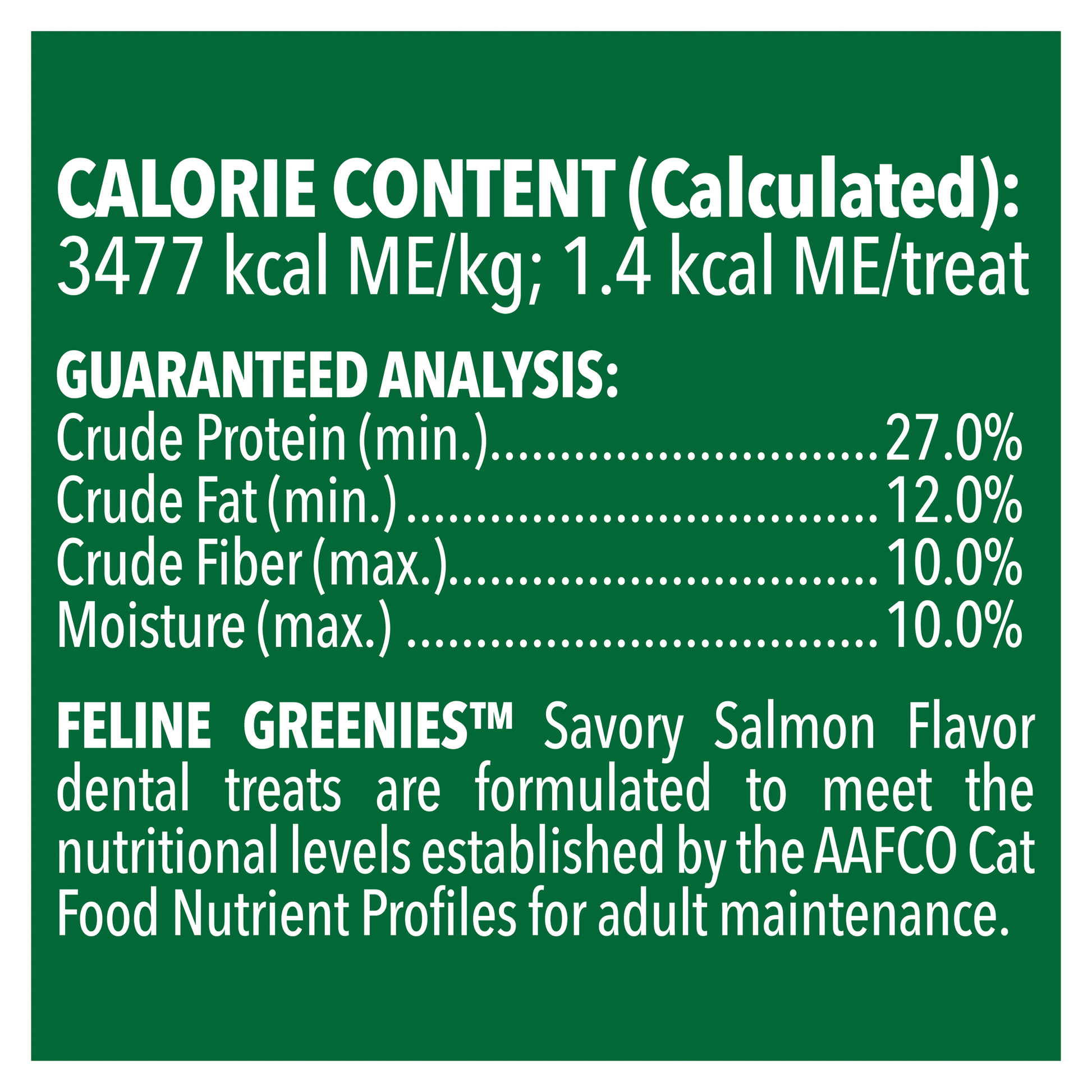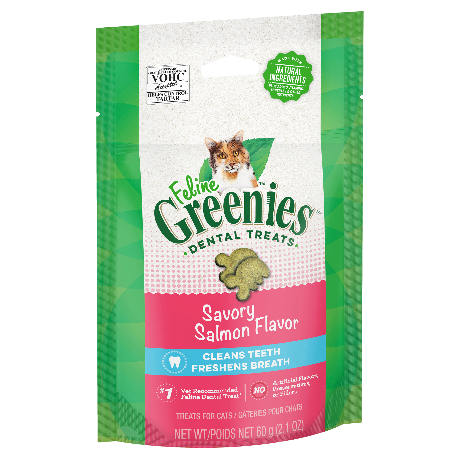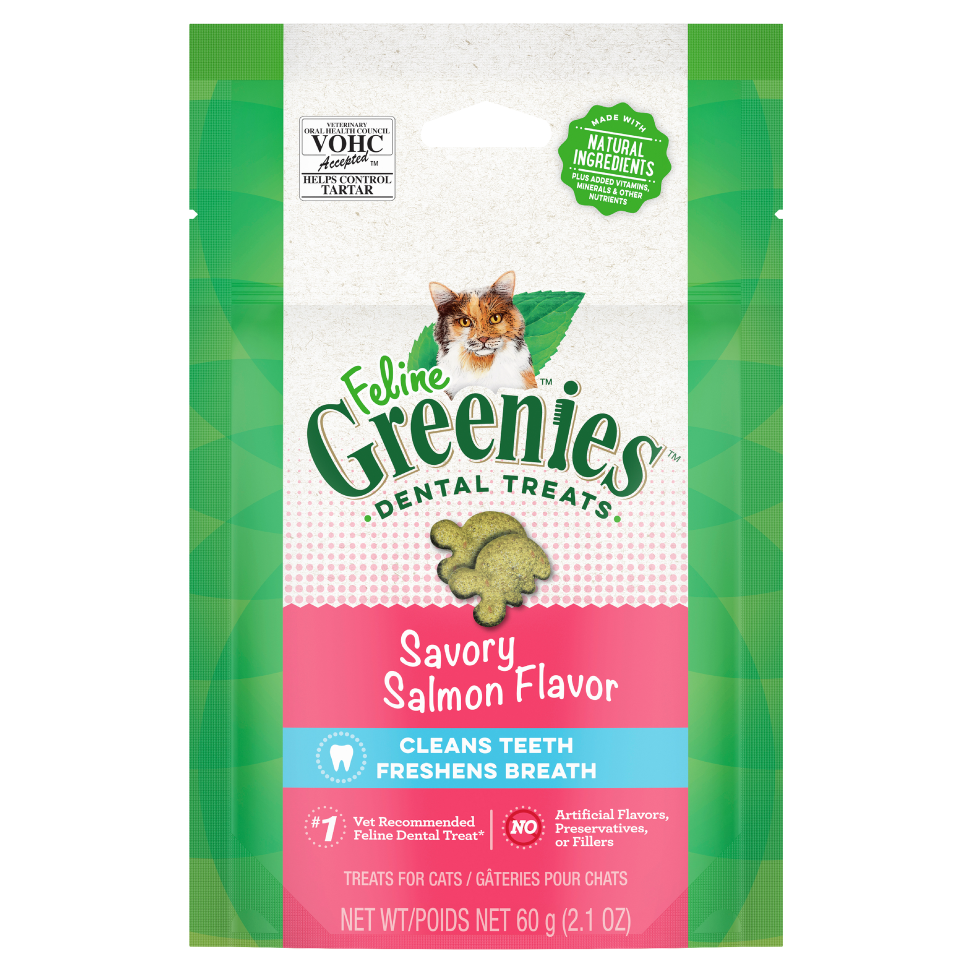 We designed FELINE GREENIES™ Dental Treats to deliver essential oral care benefits and a taste your cat will love. Irresistibly tasty, incredibly powerful. Our specially formulated crunchy texture is designed to reduce tartar buildup by enabling your cat's teeth to sink deeply into the treat. Feed daily for your cat to experience the amazing effect of CLEAN TEETH, FRESH BREATH, AND DELICIOUS FLAVOR.
